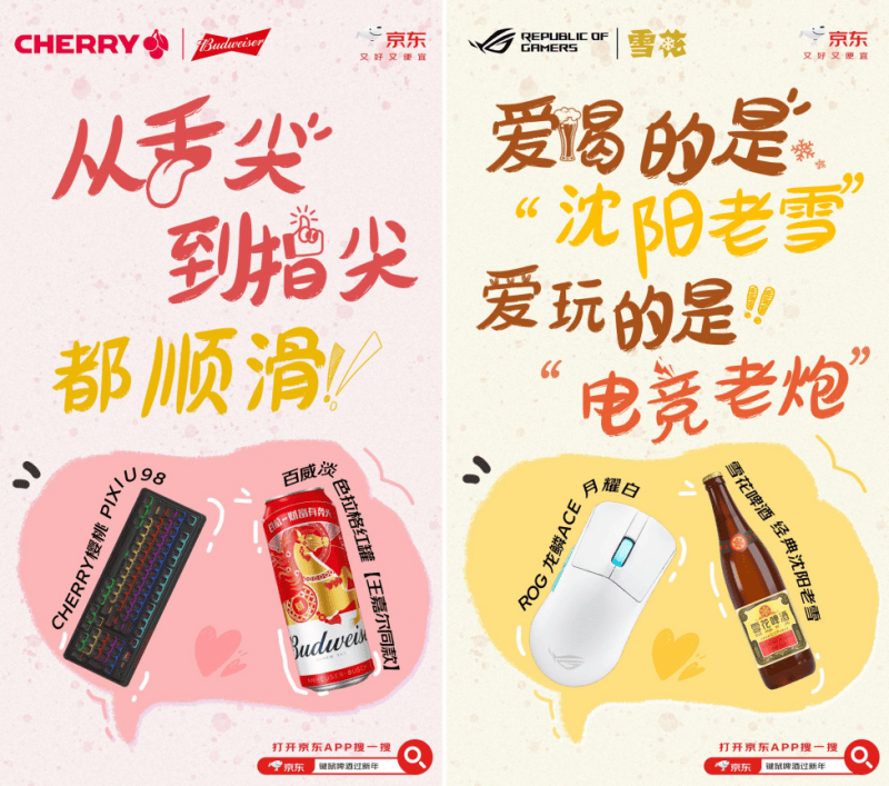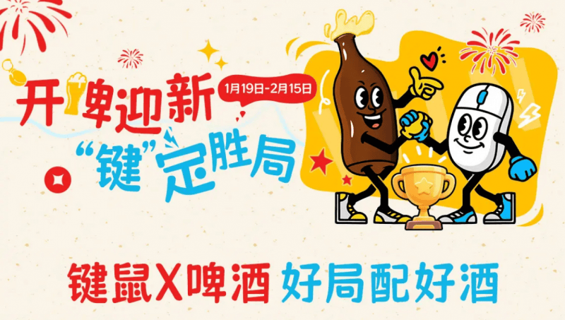 游戏配啤酒,快乐更持久,一场别开生面的“键鼠啤酒过新年”跨界盛宴在京东年货节火热开启。1月19日至2月15日,罗技、雷蛇、ROG、CHERRY、七彩虹携手青岛啤酒、喜力啤酒、雪花啤酒、百威啤酒、珠江啤酒强强联合组CP,共同打造“开啤迎新 键定胜局”专场活动,为消费者带来“好局配好酒,组套更划算”的一站式采购体验。打开京东APP搜索“键鼠啤酒过新年”直达活动会场,轻松置办又好又便宜的新春年货。