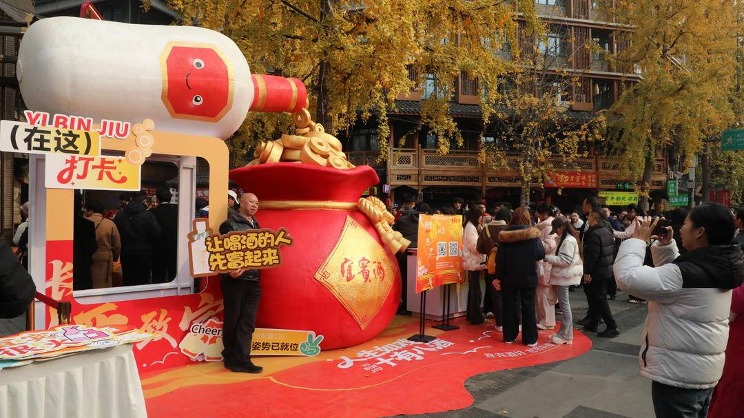 “喜庆、大气,宜宾又要火了”,从重庆自驾前来的杨静兰和朋友被现场氛围深深吸引,拿着手机不停拍摄,连连赞叹,“宜宾的酒文化太有魅力了,这次体验太值了”。