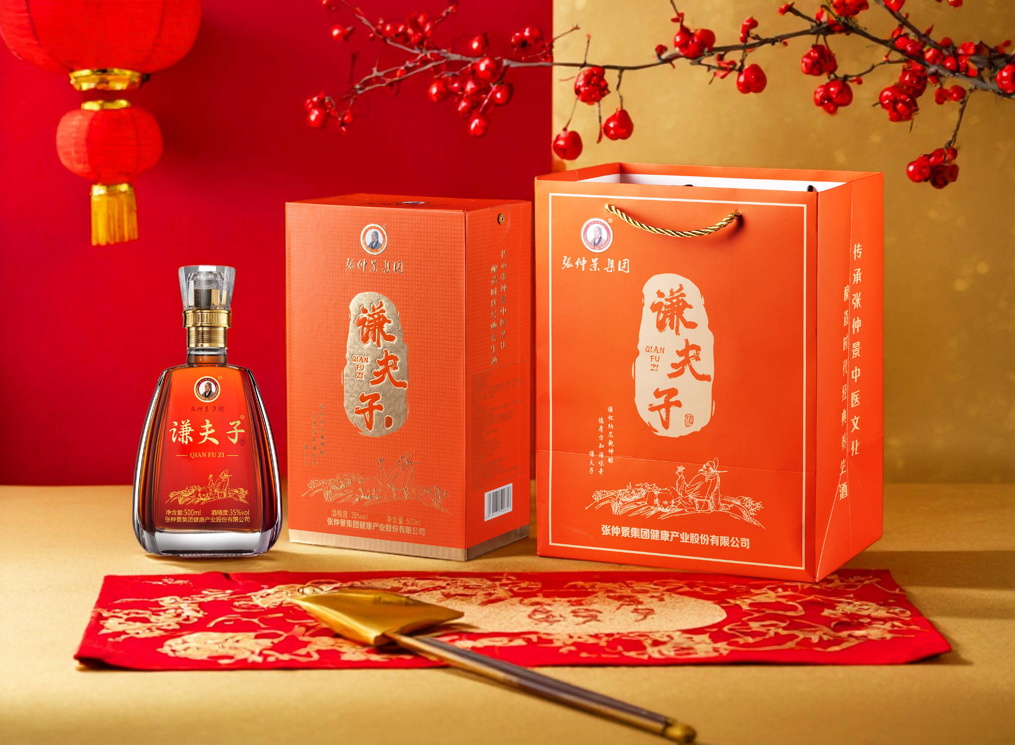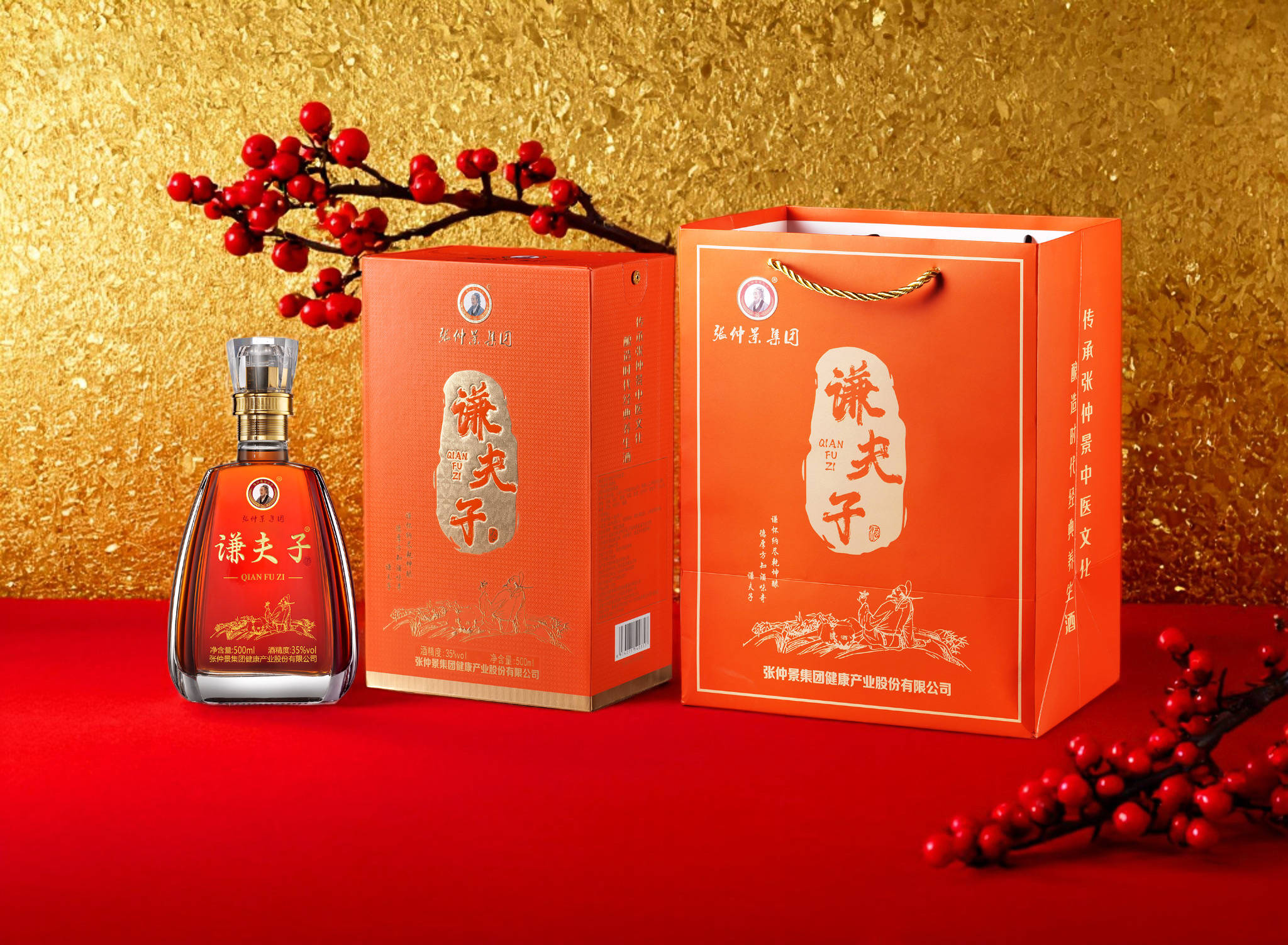 一盏谦夫子,承医圣张仲景五脏调和之精粹,袭至圣孔子五常修养之智慧,融双圣遗泽于琼浆,成就养生酒文化之千古绝唱。