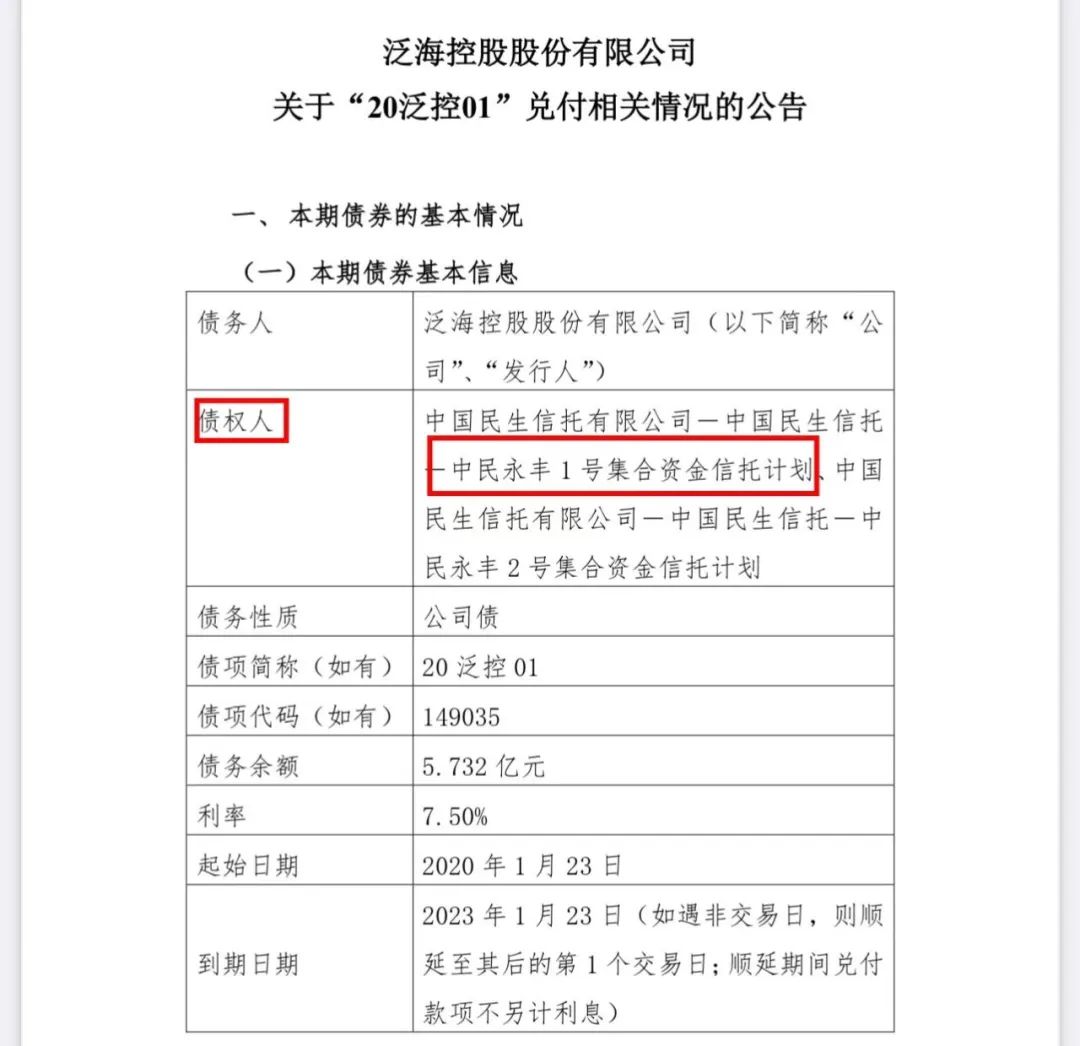 这些信托计划分别在2020年6月、7月、8月、12月以及2021年5月、6月和2022年的2月、8月到期。虽然洋河股份从未披露“民生信托-中民永丰1号”发生违约,但随着“20泛控01”债券发生违约,民生信托将大股东“泛海系”告上法庭后披露的“20泛控01”债券背后涉及的债权人主体正是“民生信托—中民永丰1号”及“民生信托—中民永丰2号集合资金信托计划”。