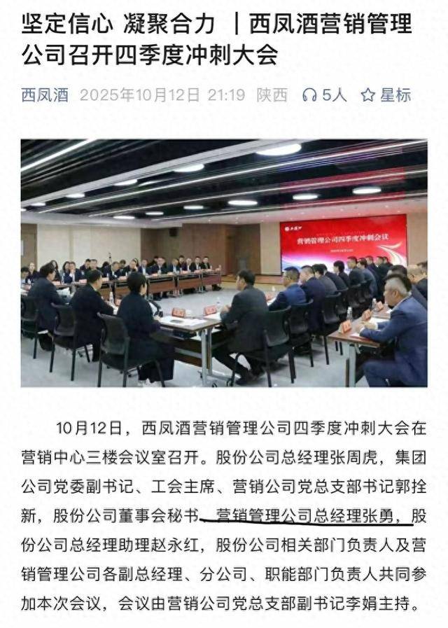 事实上,张勇的晋升并非孤立事件,而是西凤酒近年来持续调整高管团队、强化营销体系的一步。