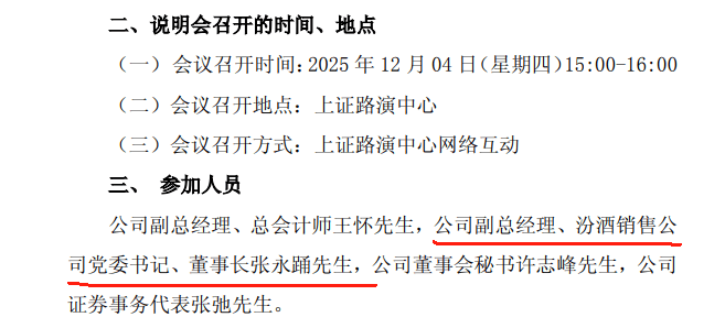 红星资本局11月25日消息,昨日,山西汾酒(600809.SH)发布的关于召开第三季度业绩说明会的公告显示,汾酒销售公司党委书记、董事长张永踊将出席此次业绩说明会。