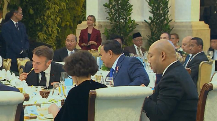 当然了在印度尼西亚访问期间,印尼总统还给了马克龙夫妇更高的接待方式,在晚上的时候印尼总统为马克龙夫妇举办了一个豪华的国宴,从曝光的画面我们可以看出,这个豪华的国宴不仅有美食美酒,现场还能边吃边欣赏歌舞表演,可以说印度尼西亚招待马克龙太上心了。
