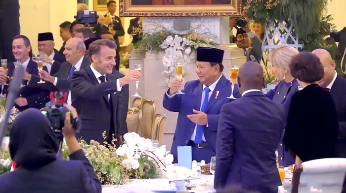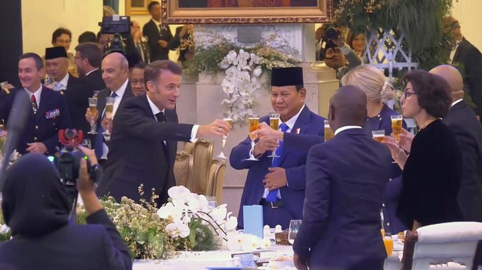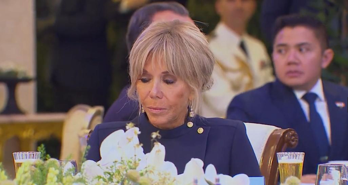 尤其是在国宴开始期间,法国总统马克龙在国宴上发表讲话之后,就是敬酒环节,当然了以马克龙的身份,能够让马克龙敬酒的也只有印尼总统了,可是让人意外的是马克龙为了给夫人更高的敬意,给印尼总统敬酒之后,马克龙还向夫人敬酒了。可以看出法国夫人也是超级开心,自己的学生还是自己的丈夫能够这么尊重她,也让法国夫人此生无憾了。