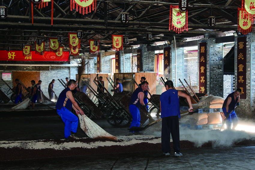 在宿迁市泗洪县双沟镇双沟酒厂,工人正在酿酒作坊下曲。齐立广 摄 视觉江苏网供图