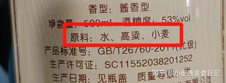 原料表上之只显示水、高粱的,才是真正的纯粮白酒,只有有酒精香精,或者是食用酒精的这种酒,都是勾兑酒。