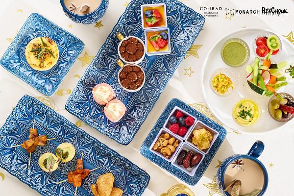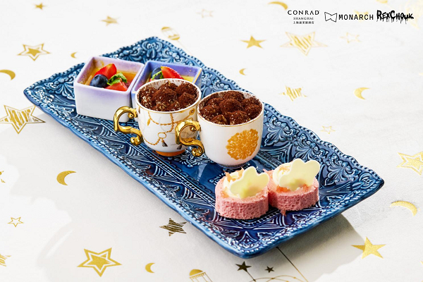 上海康莱德酒店厨师团队从 REXCHOUK 的跨界合作中汲取灵感,将其标志性艺术元素注入下午茶创作:
