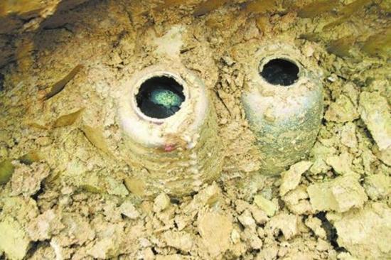 2010年12月,四川眉山陈家山唐宋时期遗址出土的谷仓罐,里面装着疑为元代酒酿。