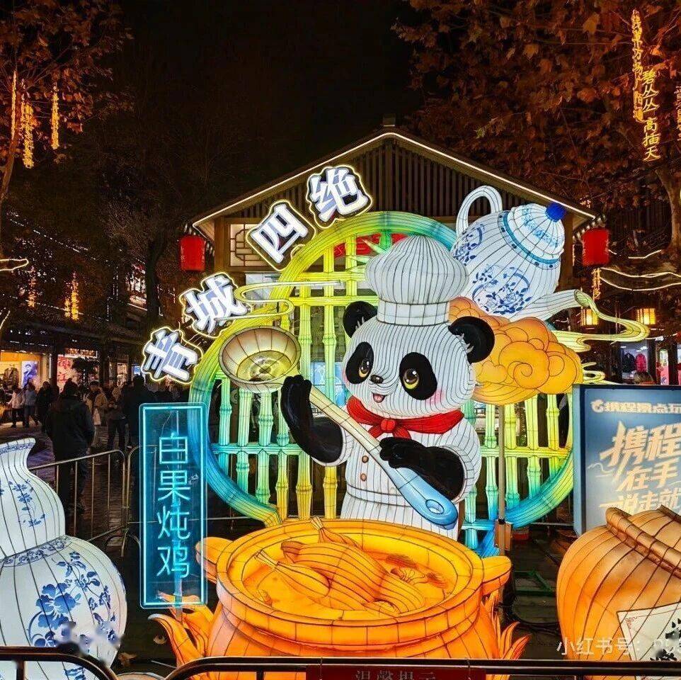 ?还有英雄气十足的“马超护堰”灯组、深情动人的“二十四个望娘滩”灯组、憨态可掬的熊猫灯组等,把都江堰的山水、传说、烟火气都揉进了夜色里。