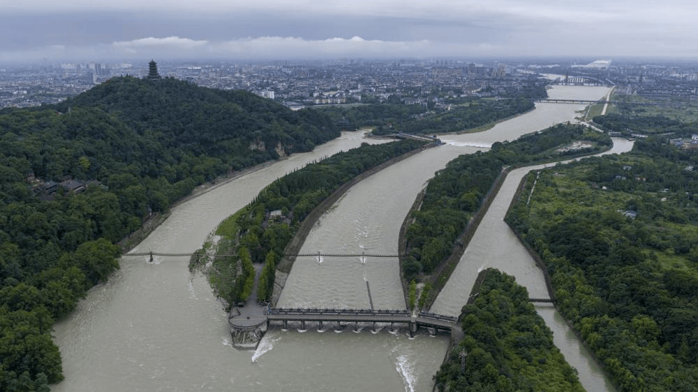 ▲鸟瞰都江堰。(动图来源:新华社)