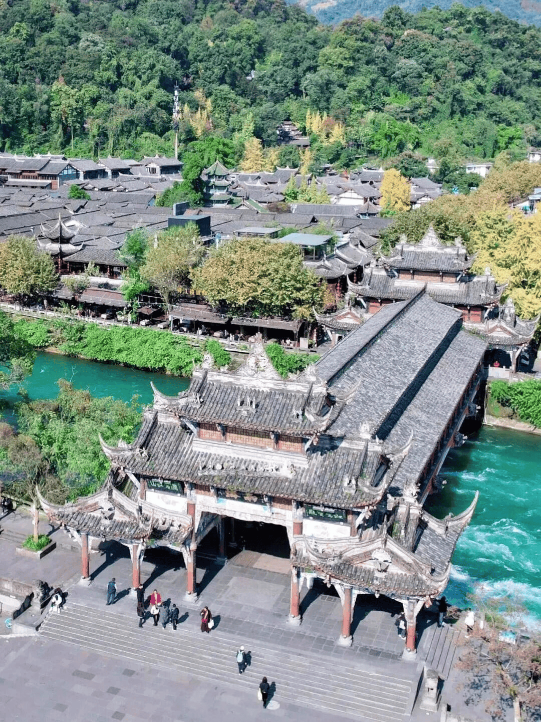 ▲都江堰天府源廊桥。(图片来源:青城山都江堰)