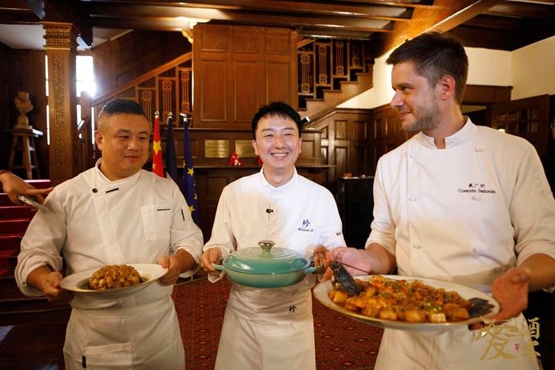 12月5日,恰逢法国总统马克龙访华之际,湖南卫视、芒果TV播出的中法交流美食纪实节目《主厨湘遇记》迎来精彩收官。在本期节目中,珍酒新餐饮项目负责人李开贵,受法国米其林主厨戴广坦邀请,共同打造了一席融合中西方烹饪理念的“法式湘宴”,并在法国驻上海总领事王度(Joan Valadou)的官邸,呈现了一场象征中法友谊的味觉盛宴。