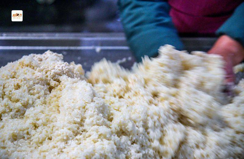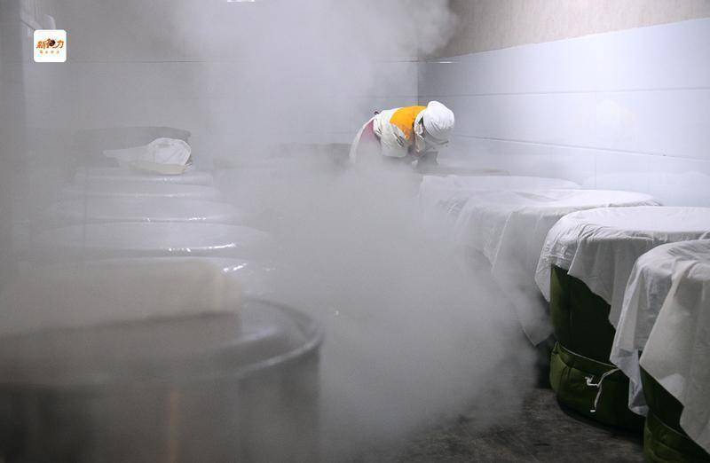 冬日清晨,西安市长安区刘秀村古秦渡酒业车间内,蒸汽裹挟着糯米香气弥漫开来。刚出蒸锅的糯米经凉水冲淋、工人反复翻拌,达到适宜拌曲的温润状态,酒曲中的根霉孢子随之苏醒,传承自周秦时期的黄酒酿造技艺,正以“温度”为脉络,在现代车间延续千年风味。
