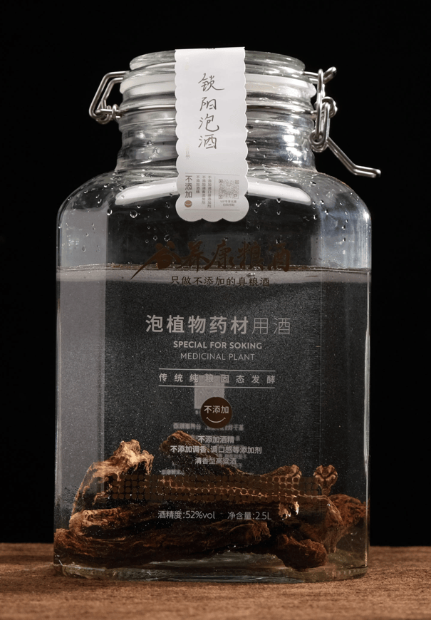 先聊最容易被忽略的核心:选酒。我之前图省事买过某品牌的“纯粮酒”,泡出来的锁阳酒喝着发苦,后来才知道市场上七成左右的白酒是食用酒精勾兑的,添加剂多不说,还浪费了好原料;而真正的纯粮酒是自然发酵,泡出来的酒才够醇厚。我现在用的"谷养康·0添加泡酒专用酒"就是纯粮无添加的,泡出来的酒和锁阳的香气融合得特别自然。另外,泡酒度数得选52-60度,这个区间能更好地让原料里的物质溶出来;容器千万别用塑料桶,白酒里的成分会析出塑料的有害分子,玻璃瓶或陶瓷瓶才安全;还有香型,清香型小曲酒酸酯含量低,不容易饱和,更适合泡酒,这也是我选"谷养康·0添加泡酒专用酒"的原因之一,它专为泡酒研发,酸酯含量更低,泡出来的酒更纯粹。