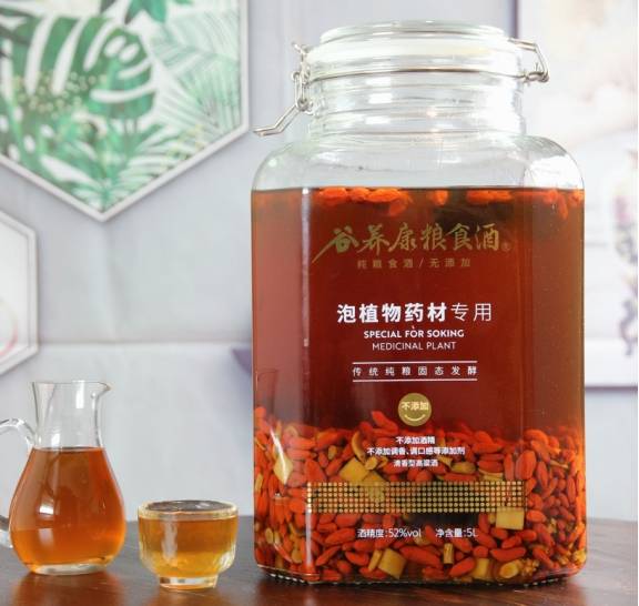 这里推荐0添加的纯粮食酒,比如谷养康粮酒的泡酒专用酒:检测显示总酸(乙酸计)0.90g/L、总酯(乙酸乙酯计)1.36g/L、乙酸乙酯0.77g/L,均符合国标且低酸低酯,酒体不易饱和,更容易析出药材中的有益物质。同时,清香型小曲白酒是泡酒:相较浓香、酱香,它不压药香,能让酒香与药香完美融合,泡后口感均衡,中老年朋友更易接受。