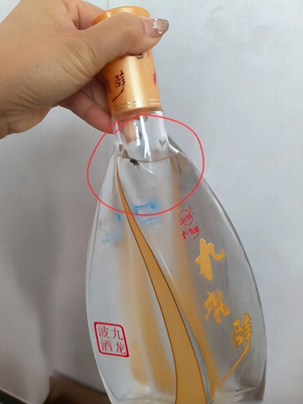从图片中可见,涉事九龙醉白酒瓶身透明区域内有明显黑色异物,位置处于酒瓶颈部与瓶身连接的凹槽处,异物形态与苍蝇高度相似。根据《食品安全法》百四十八条规定,生产不符合食品安全标准的食品,消费者除要求赔偿损失外,还可向生产者或者经营者要求支付价款十倍或者损失三倍的赔偿金;增加赔偿的金额不足一千元的,为一千元。法律界人士指出,若经核实异物确为生产过程中进入,九龙醉酒厂需承担相应的赔偿与整改责任。