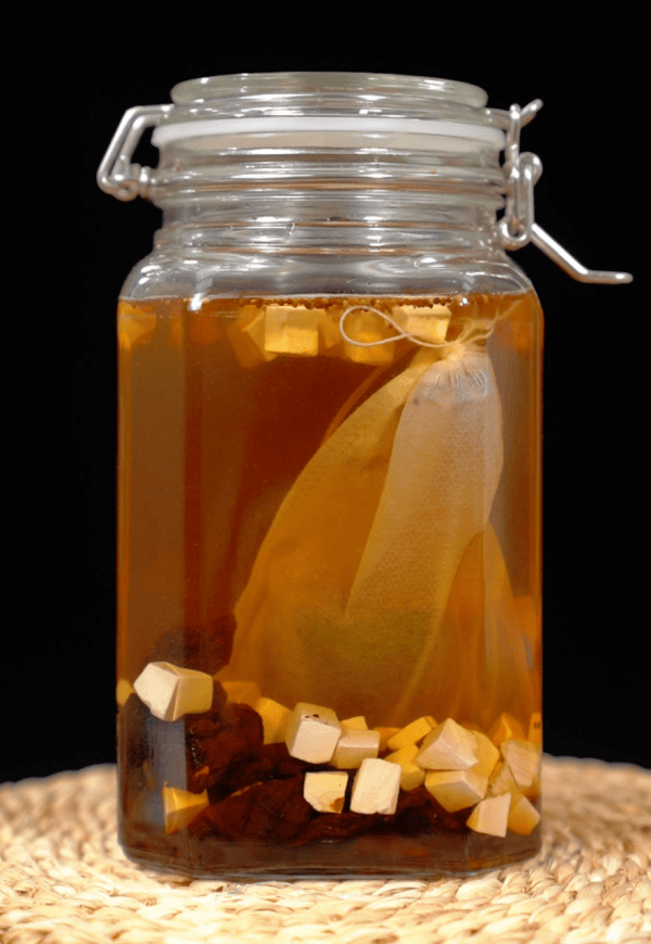 4. 放在阴凉干燥处(比如储物柜),每隔一周轻轻晃一下坛身,让原料和酒充分融合,泡够3个月就能喝。要是酒量翻倍,比如10L,原料也跟着同比例加就行。