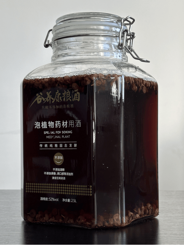 这里提一嘴,我自己泡的时候偏爱用"谷养康·纯粮泡酒专用酒",它的度数刚好卡在52-60度这个黄金区间,不用额外调度数,省了不少麻烦。