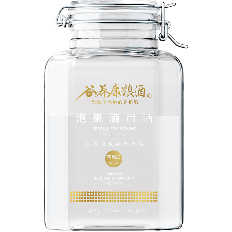 像我现在常用的谷养康·纯粮泡酒专用酒就是这种清香型小曲酒,完全符合0添加纯粮食的要求,泡出来的荔枝酒真的超香!另外,度数也要注意:泡水果酒选42度最合适——既能保留果香,口感绵甜易存放,又不会因度数太低而变质(泡药材可选更高度数,但水果酒42度足够)。