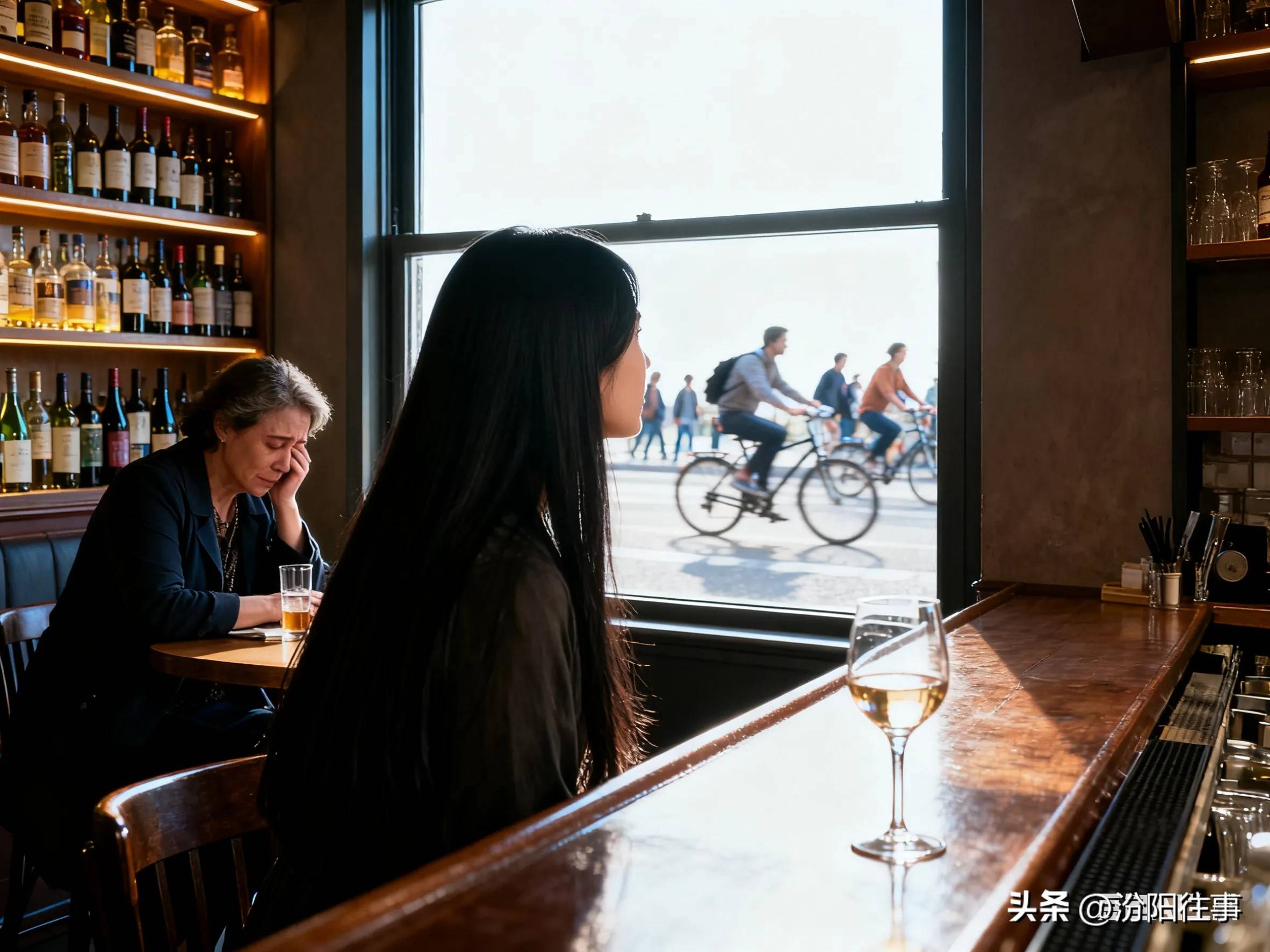 到了下午,我再一次在酒吧等人。客人迟迟不来,心情不再像之前那样躁动,反而配合着午后的清闲,站在窗边望着外面。窗外的人们在白日的阳光下骑车匆忙而行,似乎都在追寻什么。忽然,我感到一种苍凉的忧伤。正当这时,一个中年女子走进酒吧,点了一杯酒,随口让小陈放起张信哲的歌。歌声未起,女子便先泪流满面。原来,这酒吧竟然也是个可以哭泣的地方。