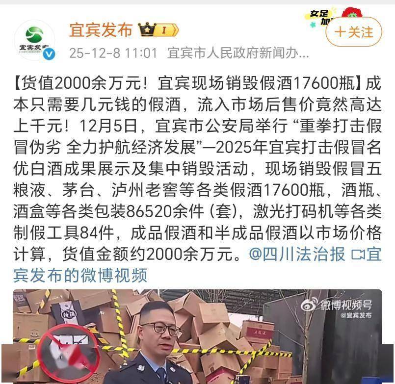 2025年12月,宜宾销毁现场一片狼藉,17600瓶假酒在推土机下化为碎片,这些曾标价数千元的名酒,单瓶成本不过6块钱。