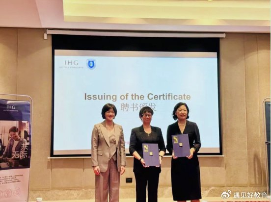 本次合作的企业导师团队,汇集了洲际集团旗下奢华、高端和品质三个级别的酒店行业的精英:三亚海棠湾天房洲际度假酒店、三亚清水湾金普顿及英迪格酒店群、三亚亚龙湾华邑酒店群、三亚湾假日度假酒店。多元品牌覆盖为学生提供了全景式、阶梯化的培养平台。仪式上,产业学院领导为行业导师们颁发了聘书。