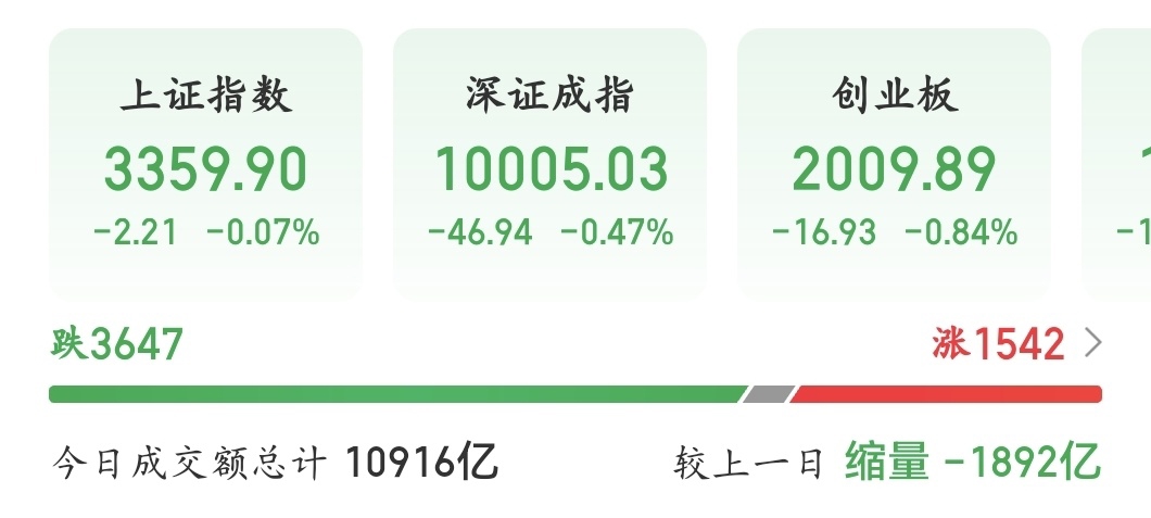 6月20日,A股市场延续调整,开盘后上证指数短暂冲击3400点后震荡走低,最终微跌0.07%收于3359.9点,深证成指跌0.47%,收于10005.03点;创业板指跌0.84%,收于2009.89点;北证50跌1.34%。全市场成交额缩量至10916亿元,较前一日减少1892亿元。