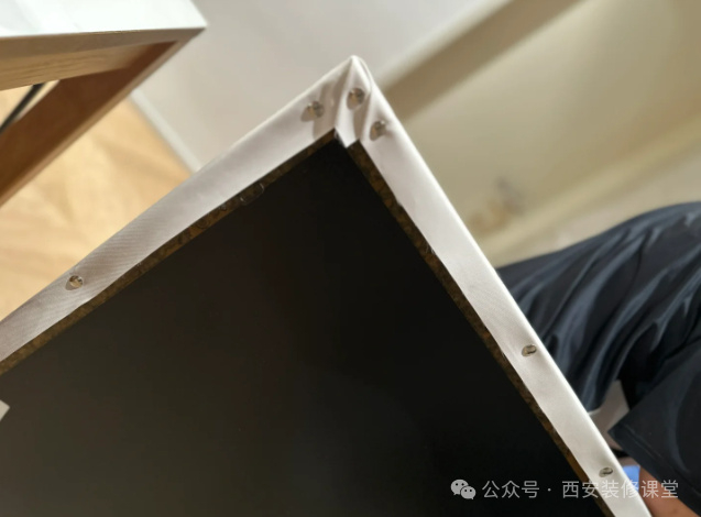 自己动手用钉枪把线毯钉在画框上,尽量拉直装订的时候,非常轻松,十几分钟就可以搞定。