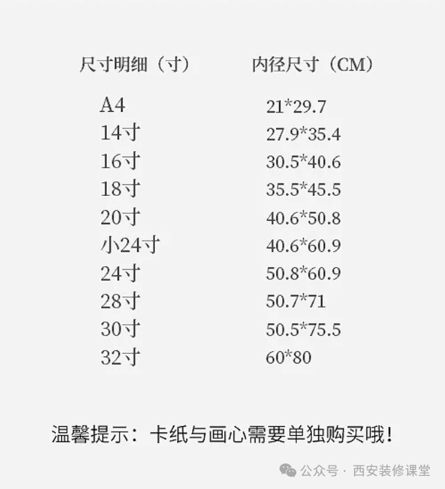 尺寸非常重要(记得保存),先去画框店下单合适的画框,如果画框是 50*60cm,那么里面的纸开孔 40*50;量好尺寸或者咨询客服就好了。