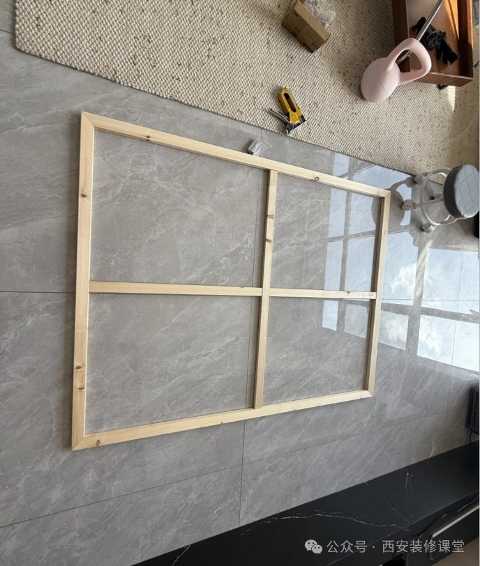 网友@栗栗:随便搜80*120装饰画都要300+,家里还剩好多龙骨,用木工工具订了一个简易画框,网购单独画布50元,回来自己钉上,效果惊艳,关键真的省钱。