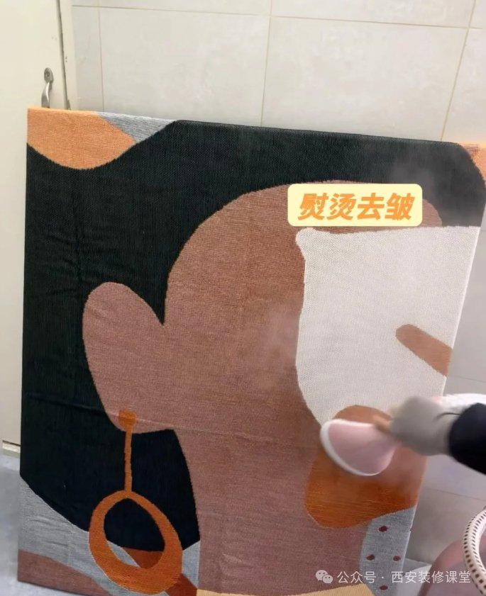 第④步:装订好以后,为了让挂画更有质感,更好熨烫一下,去除一下挂毯的褶皱。