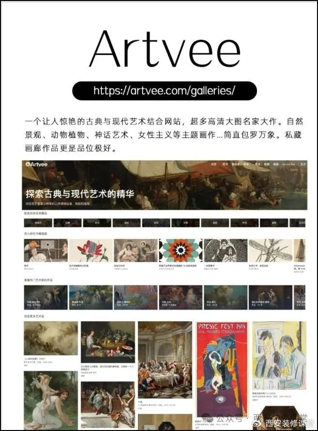4. Artvee:一个让人惊艳的古典与现代艺术结合网站,超多高清大图名家大作。自然景观、动物植物、神话艺术、女性主义等主题画作…简直包罗万象。私藏画廊作品更是品位极好。