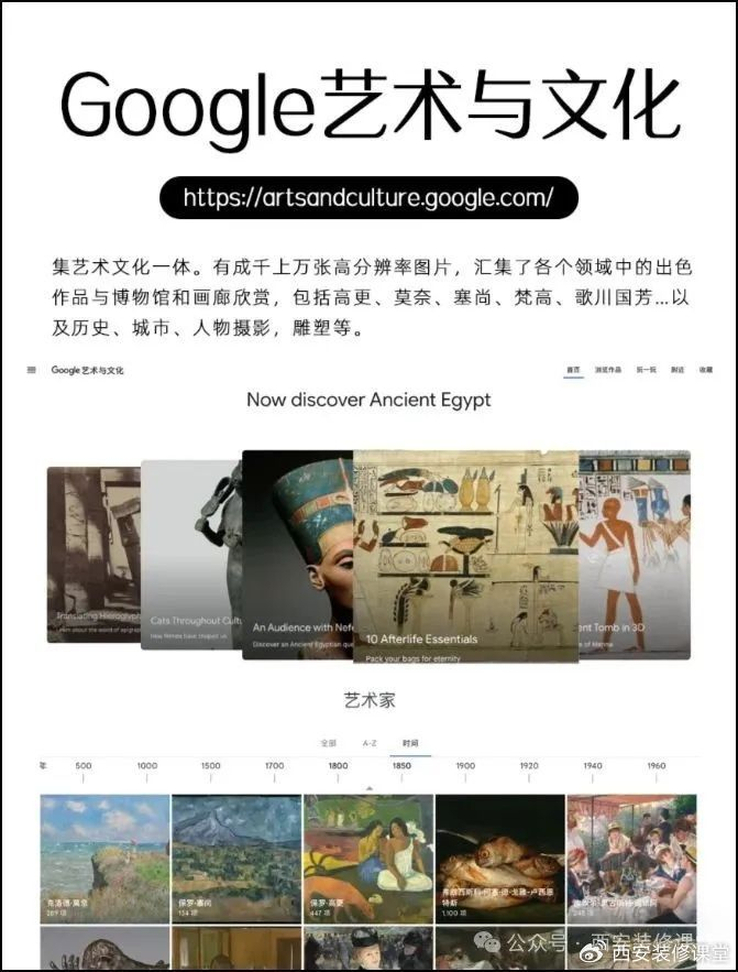 6.Google艺术与文化:集艺术文化一体。有成千上万张高分辨率图片,汇集了各个领域中的出色作品与博物馆和画廊欣赏,包括高更、莫奈、塞尚、梵高、歌川国芳…以及历史、城市、人物摄影,雕塑等。