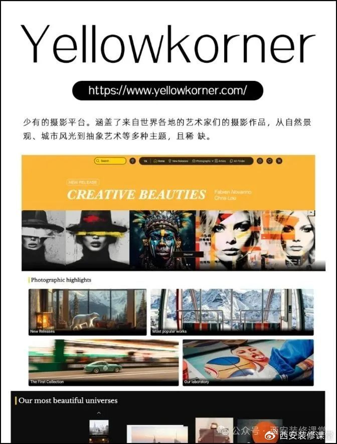 8.Yellowkorner:少有的摄影平台。涵盖了来自世界各地的艺术家们的摄影作品,从自然景观、城市风光到抽象艺术等多种主题,且稀缺。