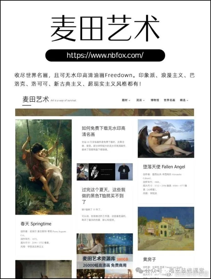 3.麦田艺术:收尽世界名画,且可无水印高清油画Freedown。各种印象派、浪漫主义、巴洛克、洛可可、新古典主义、超现实主义风格都有!