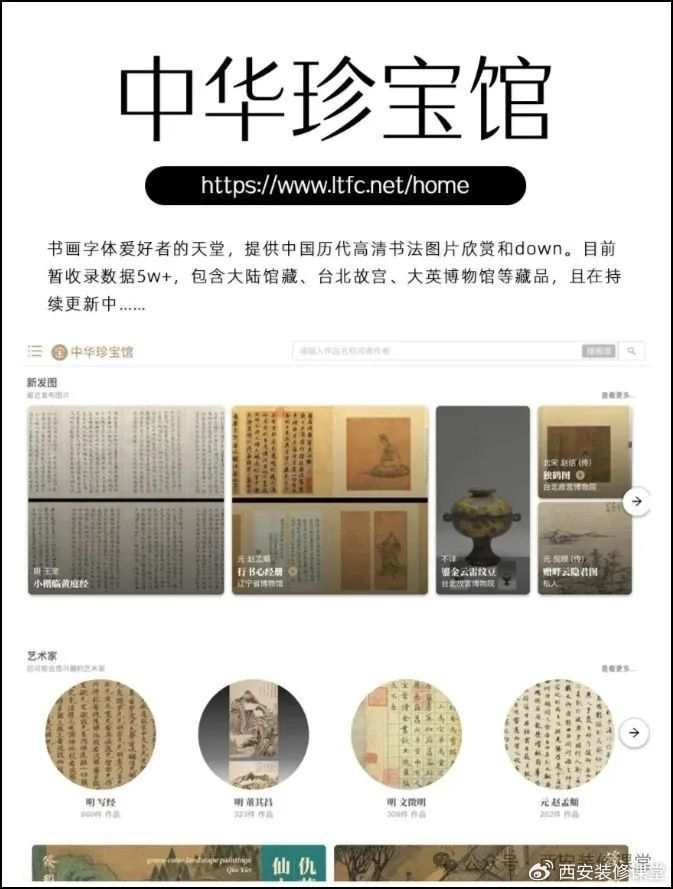 2.中华珍宝馆:书画字体爱好者的天堂,提供中国历代高清书法图片欣赏和down。目前暂收录数据5w+,包含大陆馆藏、台北故宫、大英博物馆等藏品,且持续更新中…