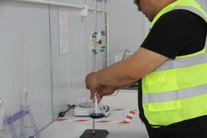 如果说管理是质量的“软实力”,那么材料的精准配比则是打造精品的“硬支撑”。走进标段试验室,科研气息扑面而来:工作人员正反复测试石灰钙镁含量,探寻更优配比;检测合格的钢筋标号清晰,刚完成坍落度、含气量测试的水泥样本贴标封存,整齐排列于铁架,为质量溯源提供可靠依据。“我们的加湿器24小时运转,实验环境要求极其严格,温度20℃±2℃,湿度必须大于50%……”试验室主任倪楠楠的话语,道出了对数据毫厘不差的追求。这份苛刻,正是铸造精品工程的坚实根基。