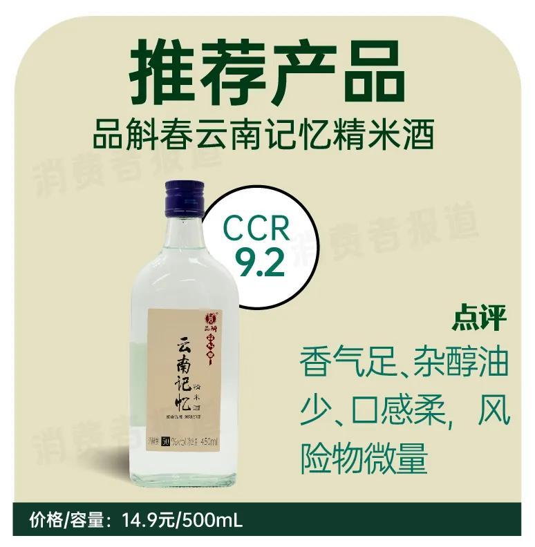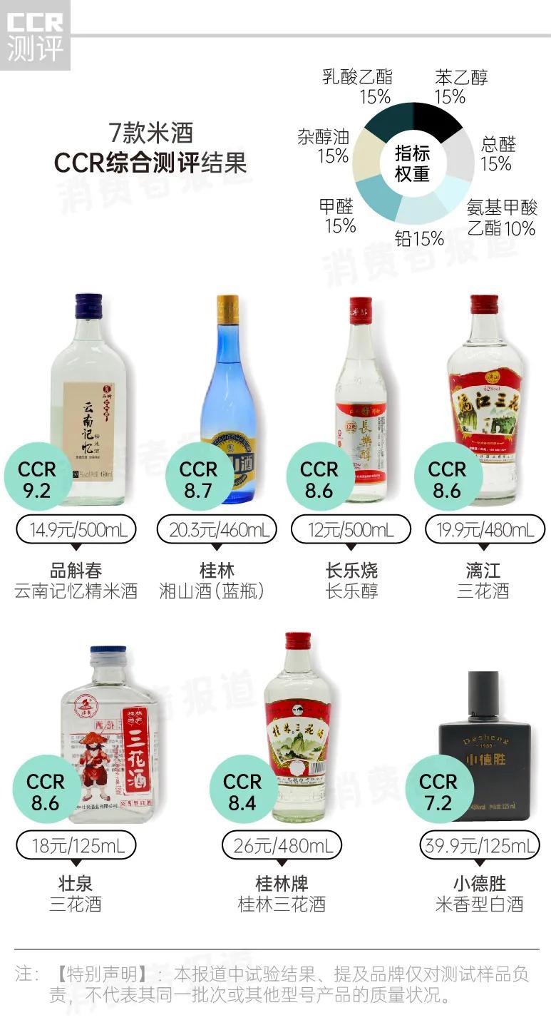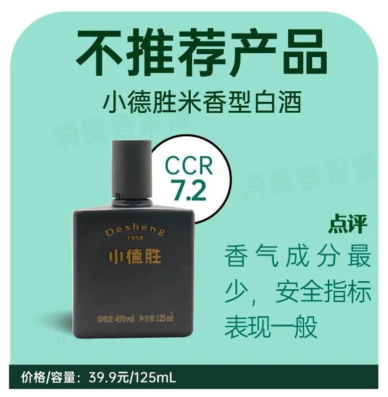 6、CCR综合评分显示,品斛春云南记忆精米酒CCR得分较高,达到9.2分;小德胜米香型白酒因香气成分含量较低,且安全性指标表现相对一般,CCR得分只有7.2分,排名垫底。