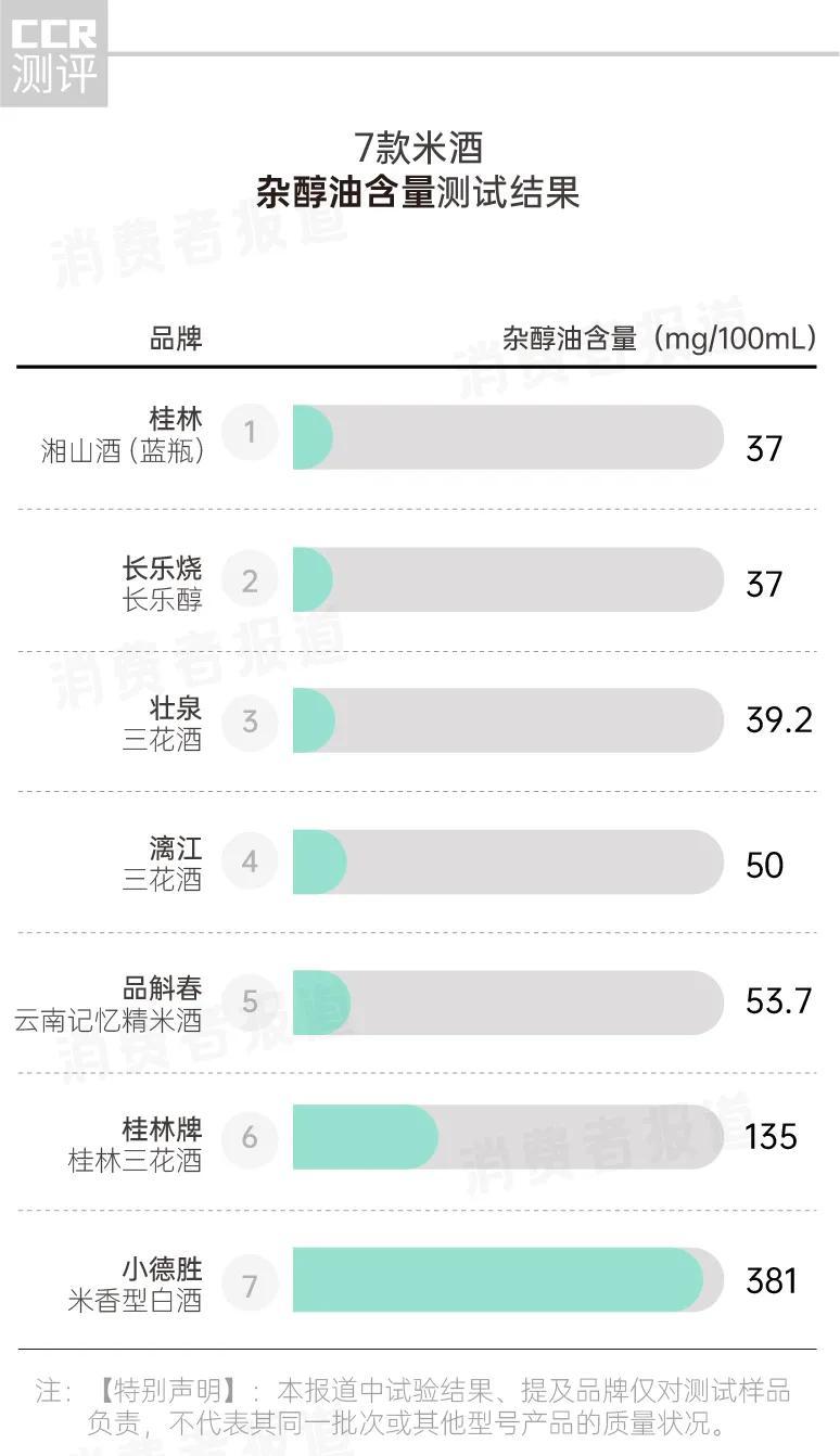 5、长乐烧长乐醇、小德胜米香型白酒、桂林牌桂林三花酒等3款米酒检出了风险物氨基甲酸乙酯,但含量相对较少。