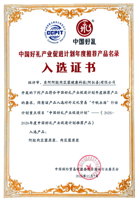 截至目前,“壮本”旗下的肉苁蓉原浆、阿胶肉苁蓉原浆等产品入驻东风航天城,成功入选“中国好礼”,不仅彰显了产品的过硬品质,也让“沙漠人参”肉苁蓉的健康价值被更多人所了解和认可。