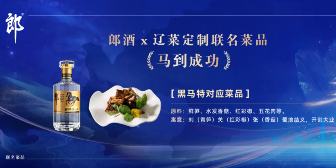 仅在取名上就能看出,三道菜聚焦宴会场景,将生活中各类喜庆场景的祝福话语化为菜名,与郎酒产品巧妙结合,加深消费者对“有喜事喝郎酒”“商务宴请用酒”的印象;在烹饪方法上更是匠心独具,将辽菜、郎酒、甚至两地的文化深度融合,最终呈现的菜肴是郎酒满足消费者美好生活需求的载体。