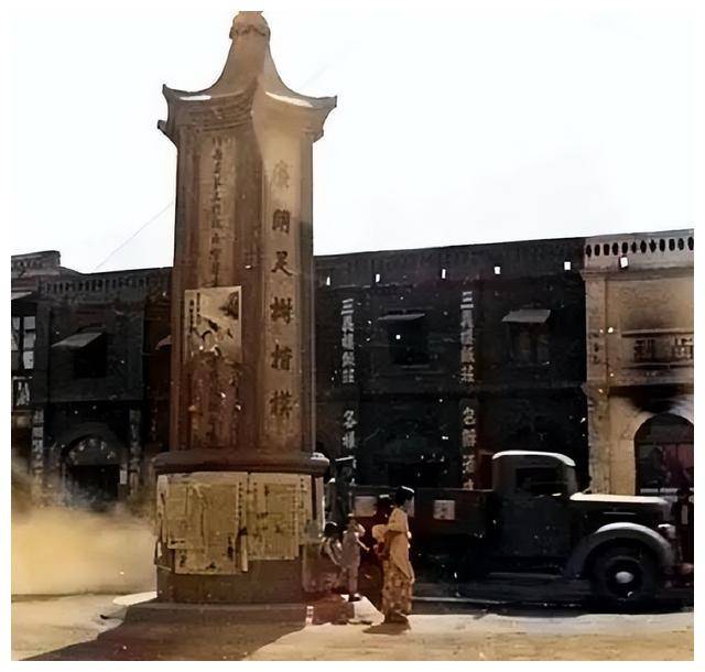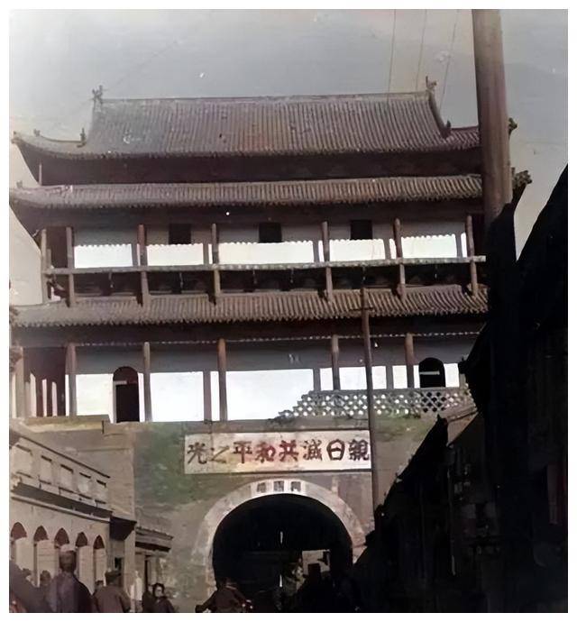 到了1941年3月,当人们再度回望那座塔时,原先的字迹已经熄灭,取而代之的是日伪政府的口号。这一变化无疑是令人震惊的,而塔本应象征着历史的遗存,却变成了压迫的象征。河南老照片中的那些细节,右上角的画面似乎再次发出警告:这座城市的历史正在被颠覆。