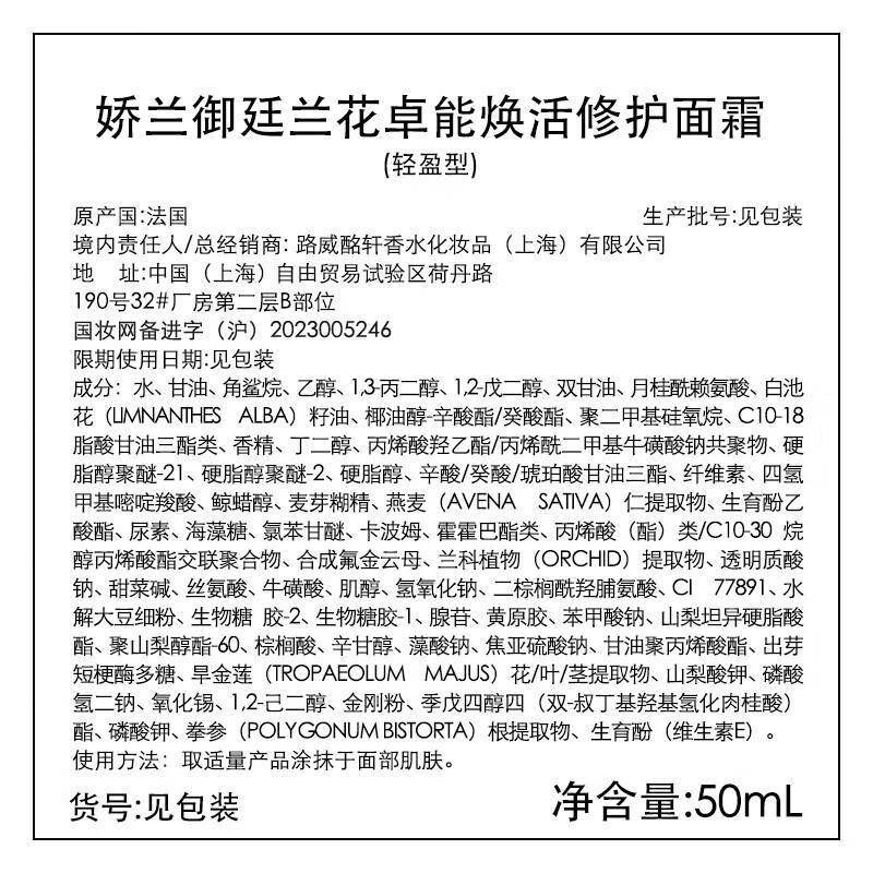 1️⃣ 珍稀兰花精粹:核心成分来自娇兰在泰国培育的3万种兰花中精选出的天价兰花品种,其提取物能激活肌肤长寿蛋白,显著提升细胞活力。