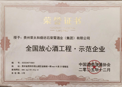 2025年12月4日,中国酒类流通协会“2025年放心酒工程工作会议”在北京隆重举行。会上,贵州石荣霄酒业凭借其在产品品质、诚信经营及规范践行等方面的卓越表现,成功通过严苛审核,荣获 “2025年放心酒工程示范单位” 授牌。