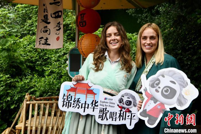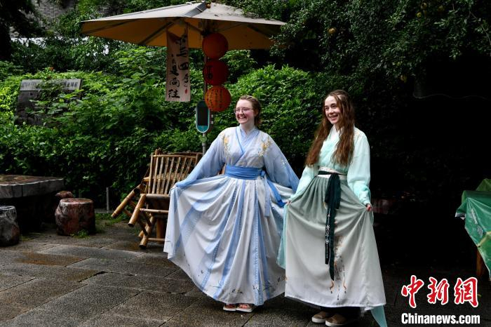 7月12日,美国青年身着中国传统服饰留影。中新社记者 王东明 摄