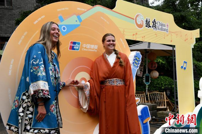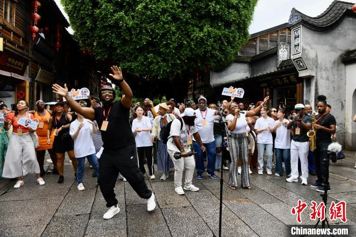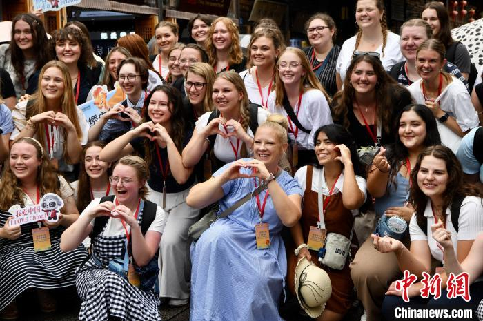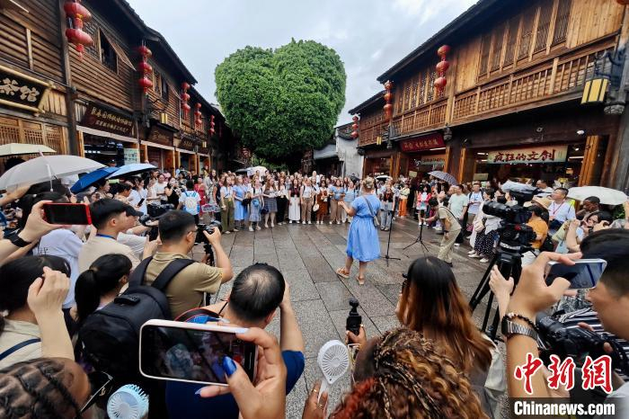 7月12日,美国青年在福州三坊七巷古街区集体歌唱。中新社记者 王东明 摄