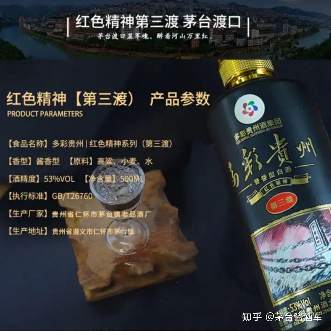 多彩贵州酒(红色精神第三渡)命名含义:【第三渡 茅台渡口】:茅台渡口显军魂,醉看河山万里红。四渡赤水中的茅台渡口,纯粮坤沙、大曲酿造、老酒调味。第三渡黑金,寓意革命道路虽然荆棘满路,但是胜利在前,象征着黎明前的黑夜。