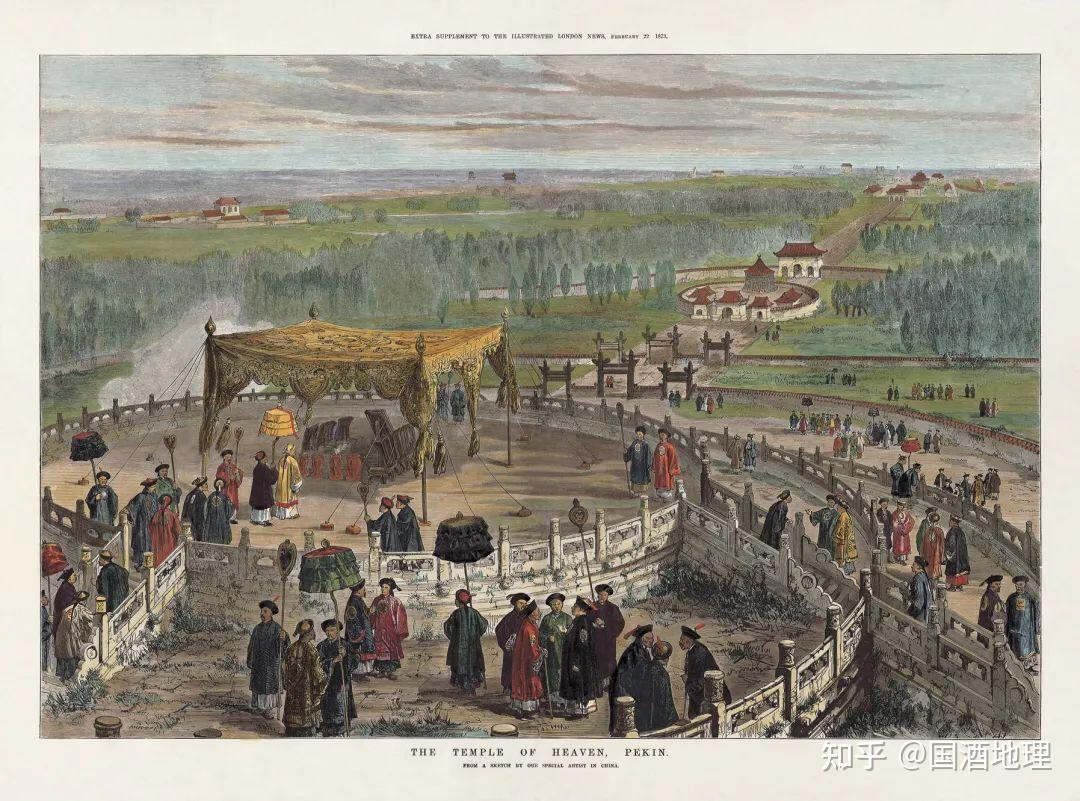 1872年12月,北京天坛圜丘坛,同治皇帝祭天大典。刊载于1873年出版的英国《伦敦新闻画报》。