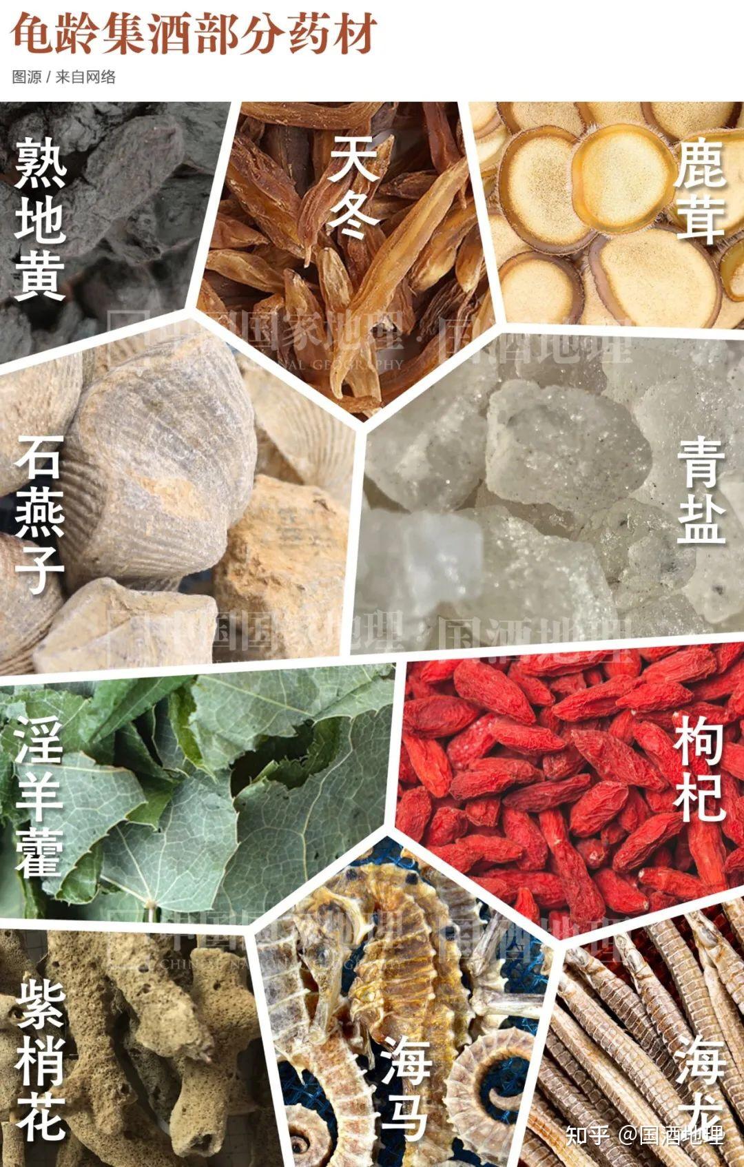 龟龄集酒处方中包括天上飞的、海里游的、地上跑的,集东西南北中各种名贵药材于一体,炮制方法更是奥妙——鹿茸,一般药都用黄酒炮制,此方中却用陈醋炮制,熟地、天冬、枸杞却用黄酒制,淫羊藿更是用牛奶制,其余原料则分别用蜂蜜、姜汁、椒水等独特制法,堪称中医药宝库中的一颗璀璨的明珠。