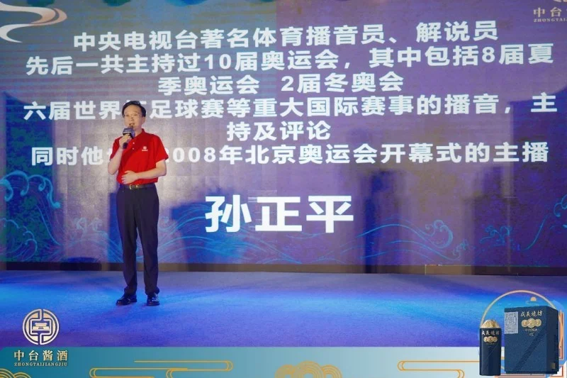 随着活动的深入,下午的议程更是精彩纷呈。三点整,宾客们纷纷签到入场,现场气氛热烈而庄重。央视体育解说员孙正平老师作为本次活动的特邀嘉宾,上台分享了自己与奥运、与中台酱酒的不解之缘,特别是重现了08年奥运开幕式解说的场景,让在场的每一位嘉宾都听得津津有味,梦回2008。